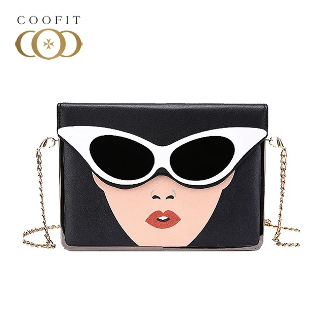 Limited Chance of Coofit Bag Fashion Beauty Sunglasses Printing Flap Cover Messenger Bag sac a main femme de marque l
